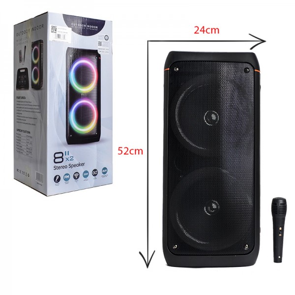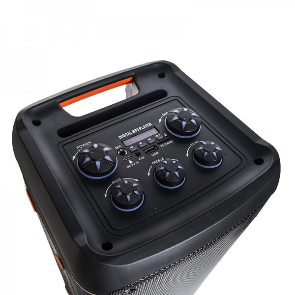 این مدل با اتصال بلوتوثی قابلیت پخش موسیقی از تلفن همراه، تبلت یا لپتاپ را فراهم میکند. توان خروجی قدرتمند 20 وات همراه با دو اسپیکر 8 اینچی صدایی عمیق، شفاف و پرحجم ارائه میدهد. علاوه بر این، اسپیکر از ورودیهای USB (فلش مموری)، کارت حافظه، AUX و رادیو FM نیز پشتیبانی میکند که دامنه استفاده از آن را گستردهتر میسازد.