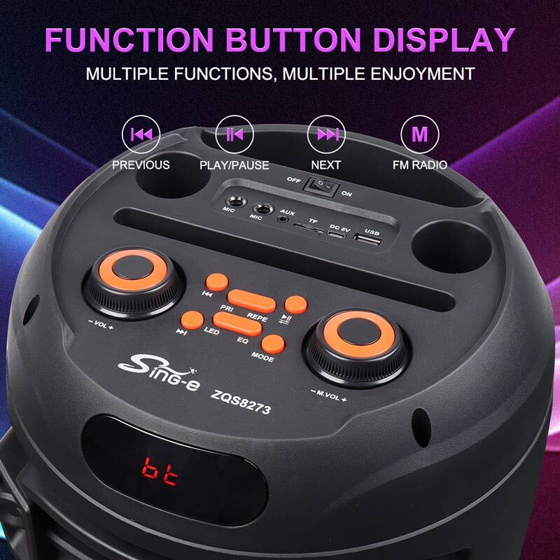 اسپیکر بلوتوثی قابل حمل Sing-e مدل ZQS8273 به همراه میکروفون و ریموت کنترل