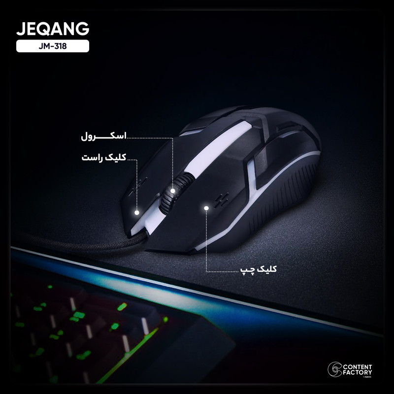 موس گیمینگ سیم دار JEQANG مدل JM-۳۱۸ یک موس سیمی و گیمینگ با کیفیت بسیار بالا و قیمت ارزان موجود در بازار میباشد.