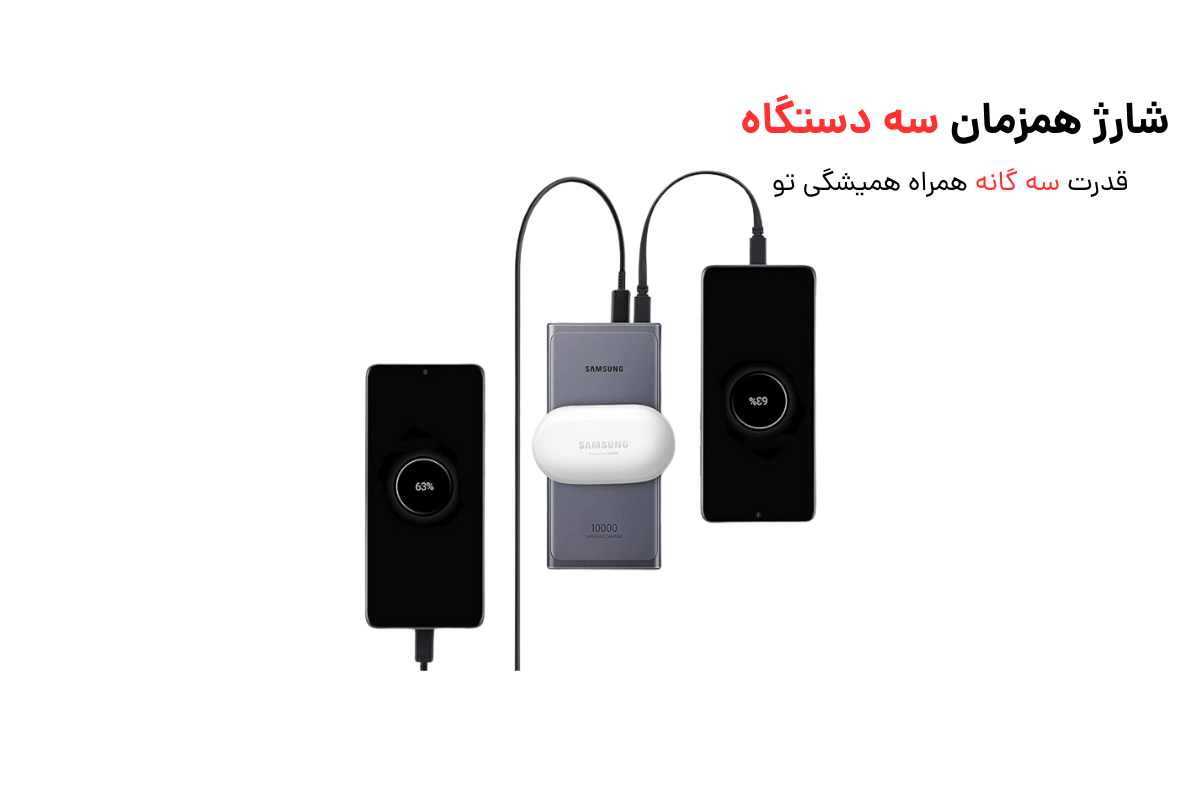 پاوربانک بیسیم سامسونگ مدل S19 با ظرفیت ۱۰٬۰۰۰ میلیآمپر ساعت، یک همراه هوشمند برای شارژ سریع و بدون دردسر دستگاههای شماست.